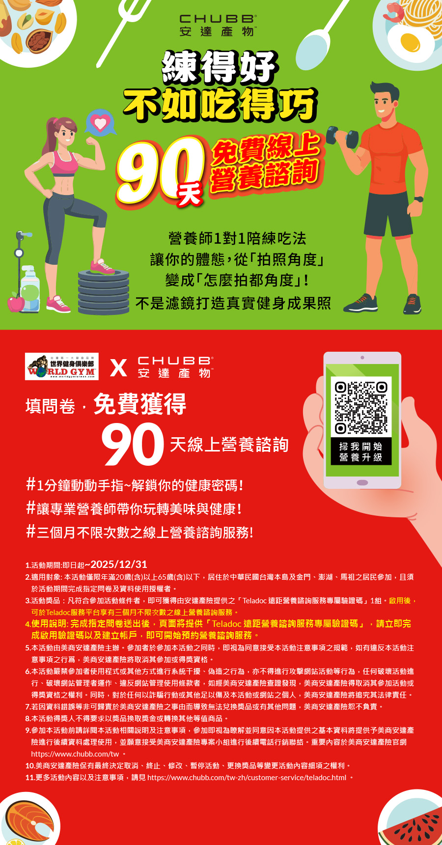 #worldgymtaiwan #安達產險 #Teladoc線上營養諮詢 #免費營養諮詢