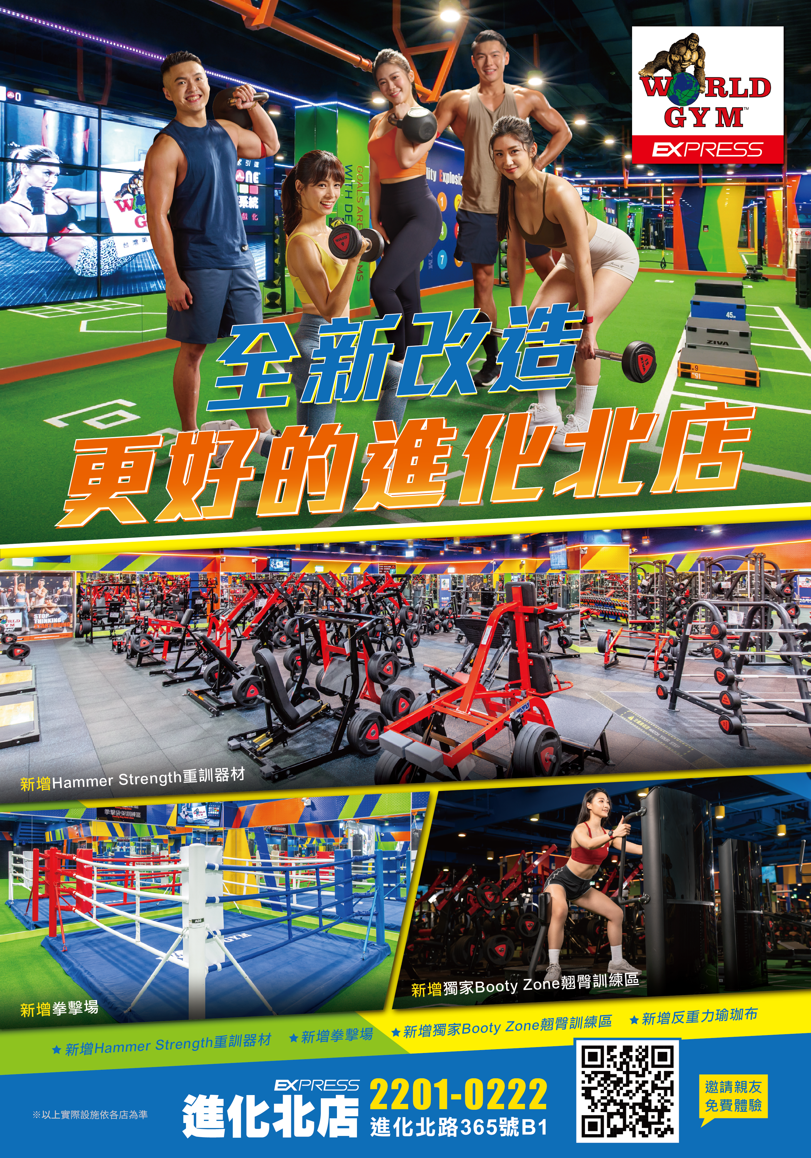 新增反重力瑜珈布 新增獨家Booty Zone翹臀訓練區 新增Hammer Strength重訓器材 立即預約參觀土城中央店