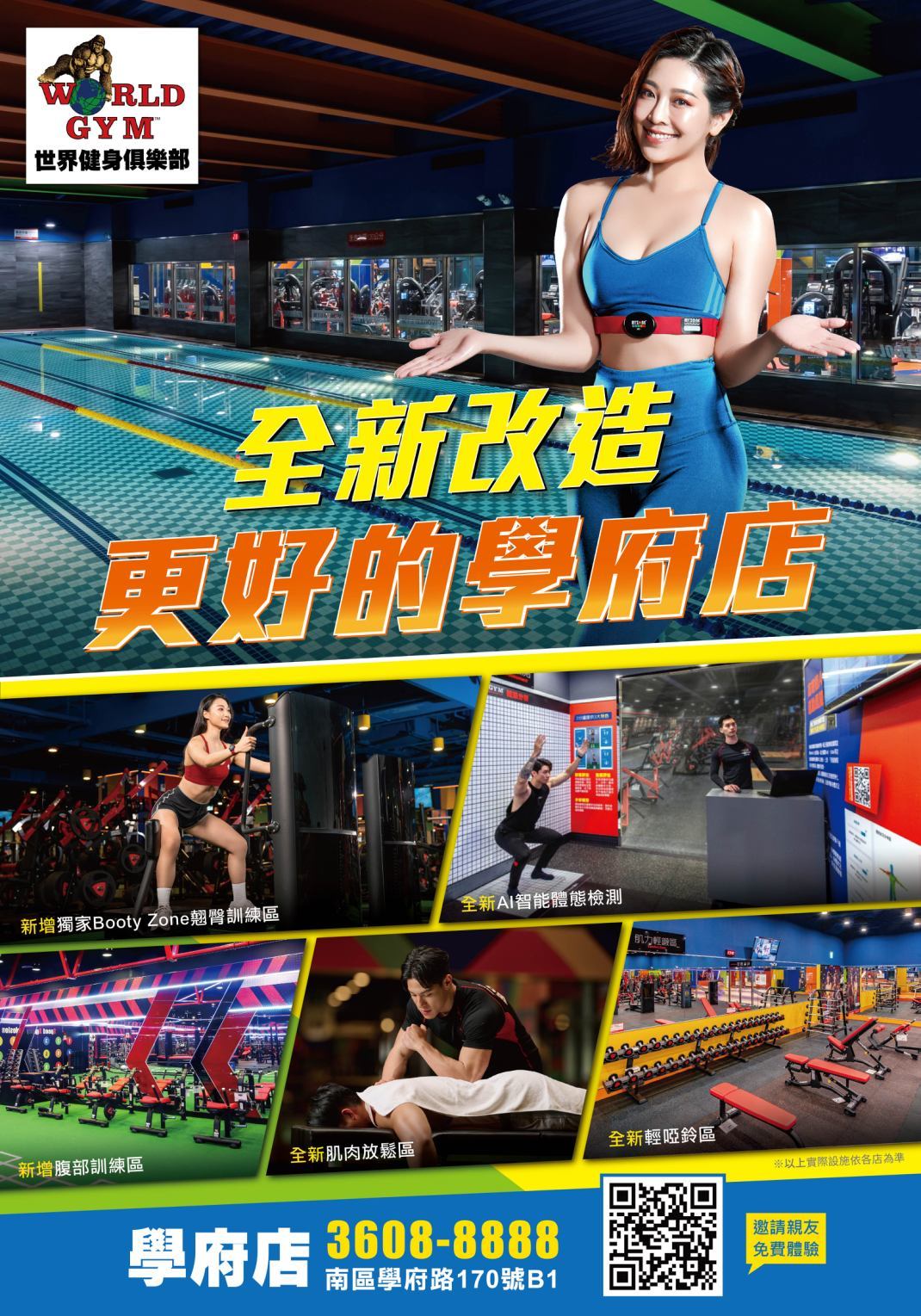 全新輕啞鈴區 新增獨家Booty Zone翹臀訓練區 新增腹部訓練區 立即預約參觀學府店