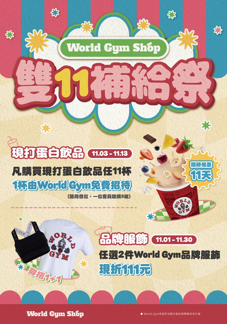 🎉 雙11補給祭開跑!World Gym Shop 限時11天優惠開搶 💪