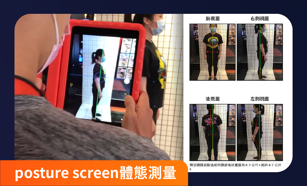 根據美國國家運動醫學院-矯正運動專家國際證照NASM-CES的理論,結合國際FMS、SFMA等功能性訓練評估標準中之核心、上肢、下肢鍛鍊項目來分類各項人體動作狀態。透過數位攝影機捕捉人體關鍵部位的動態變化,並搭配先進AI 影像分析系統,迅速判斷身體狀況。